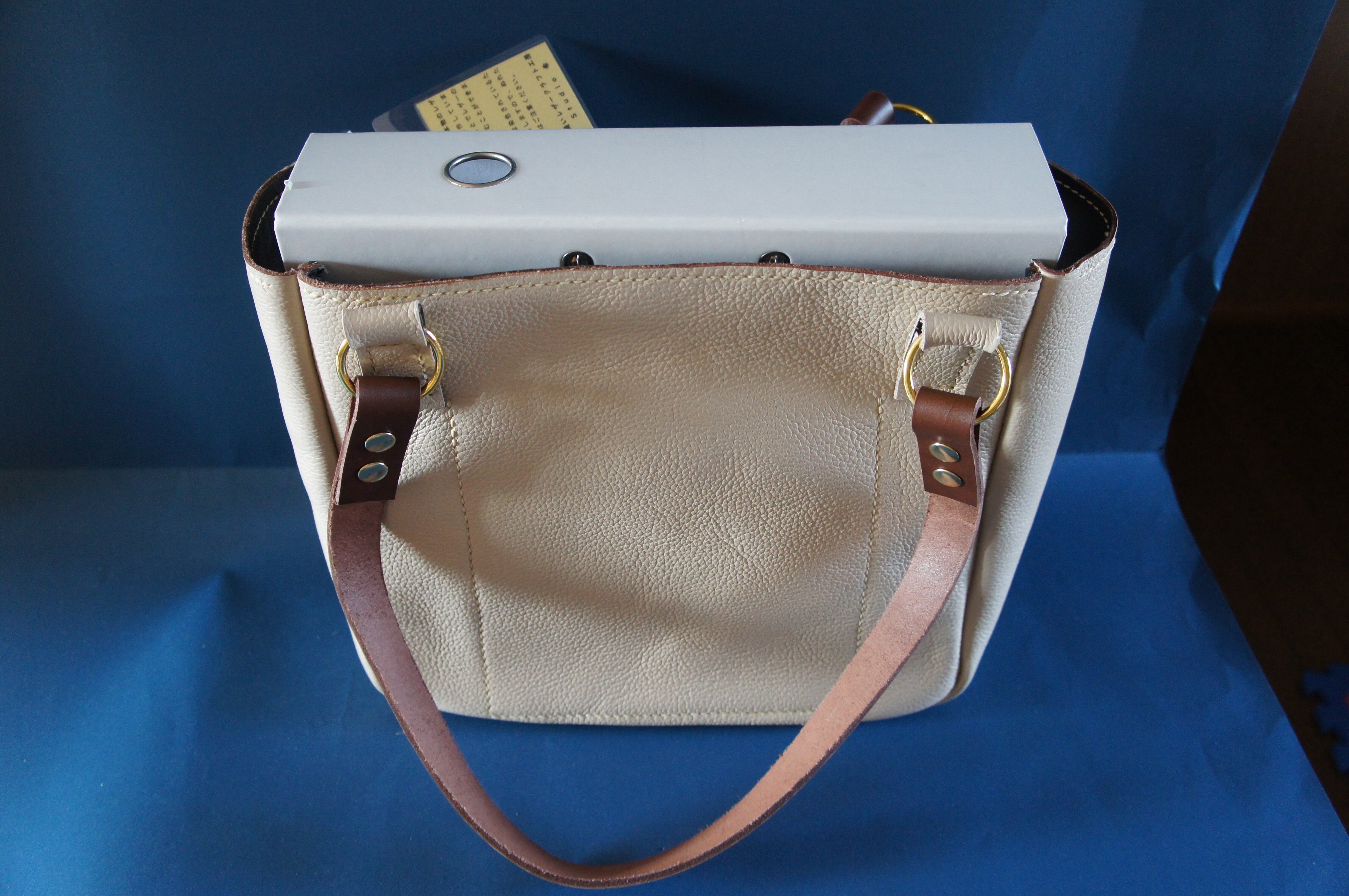 女性ビジネス向けのトートバック クリーム色シュリンク 収納力抜群