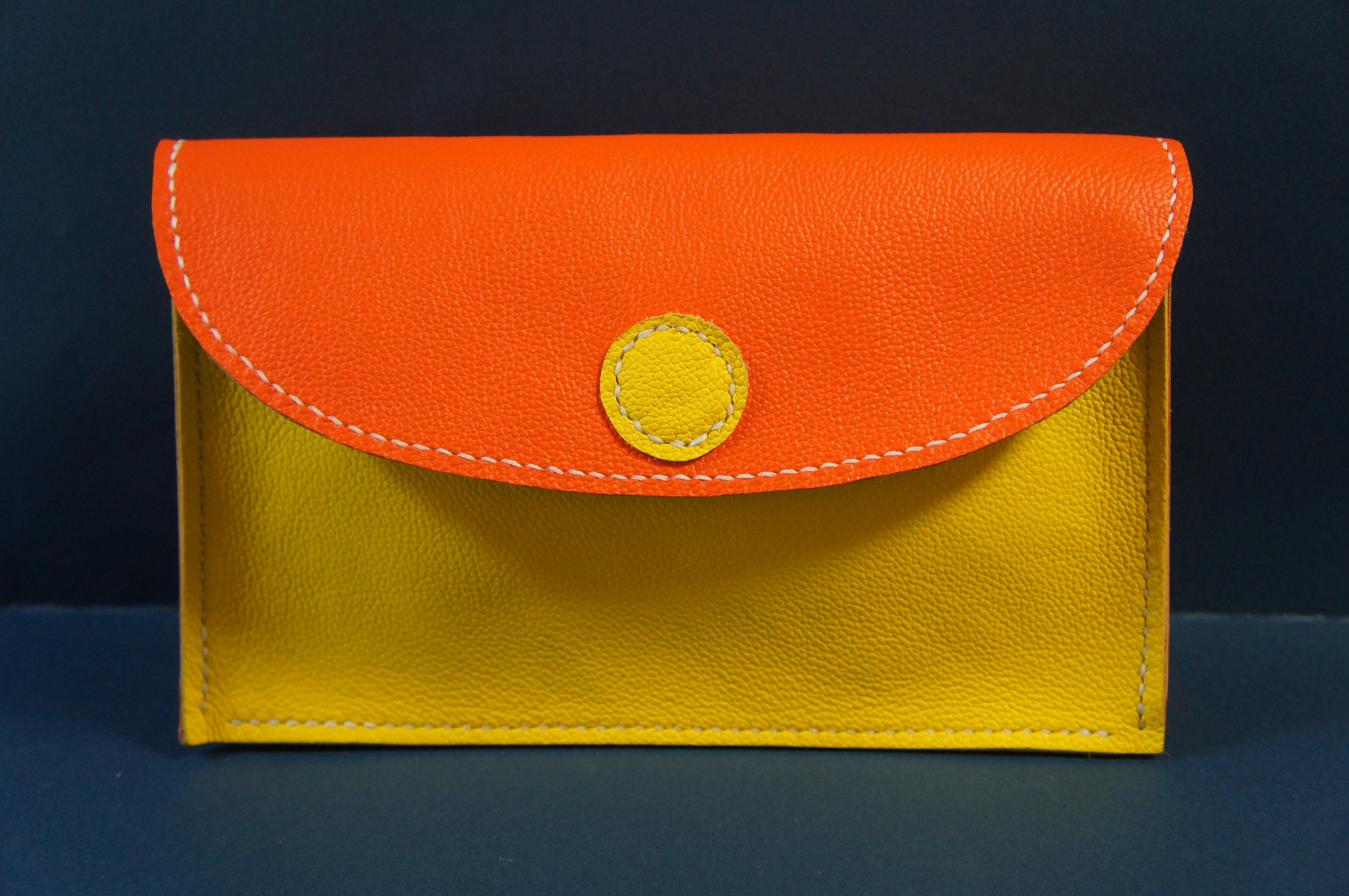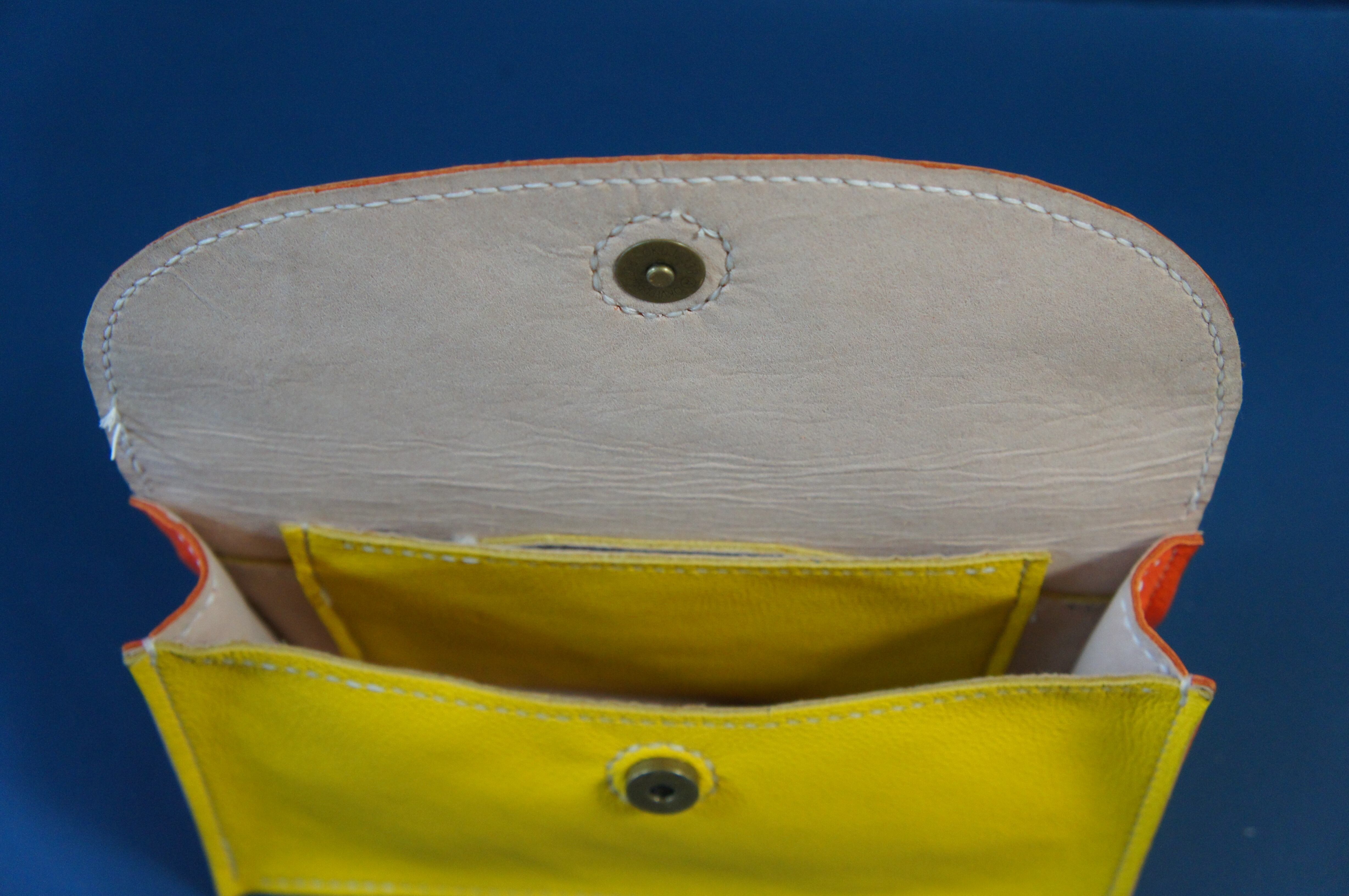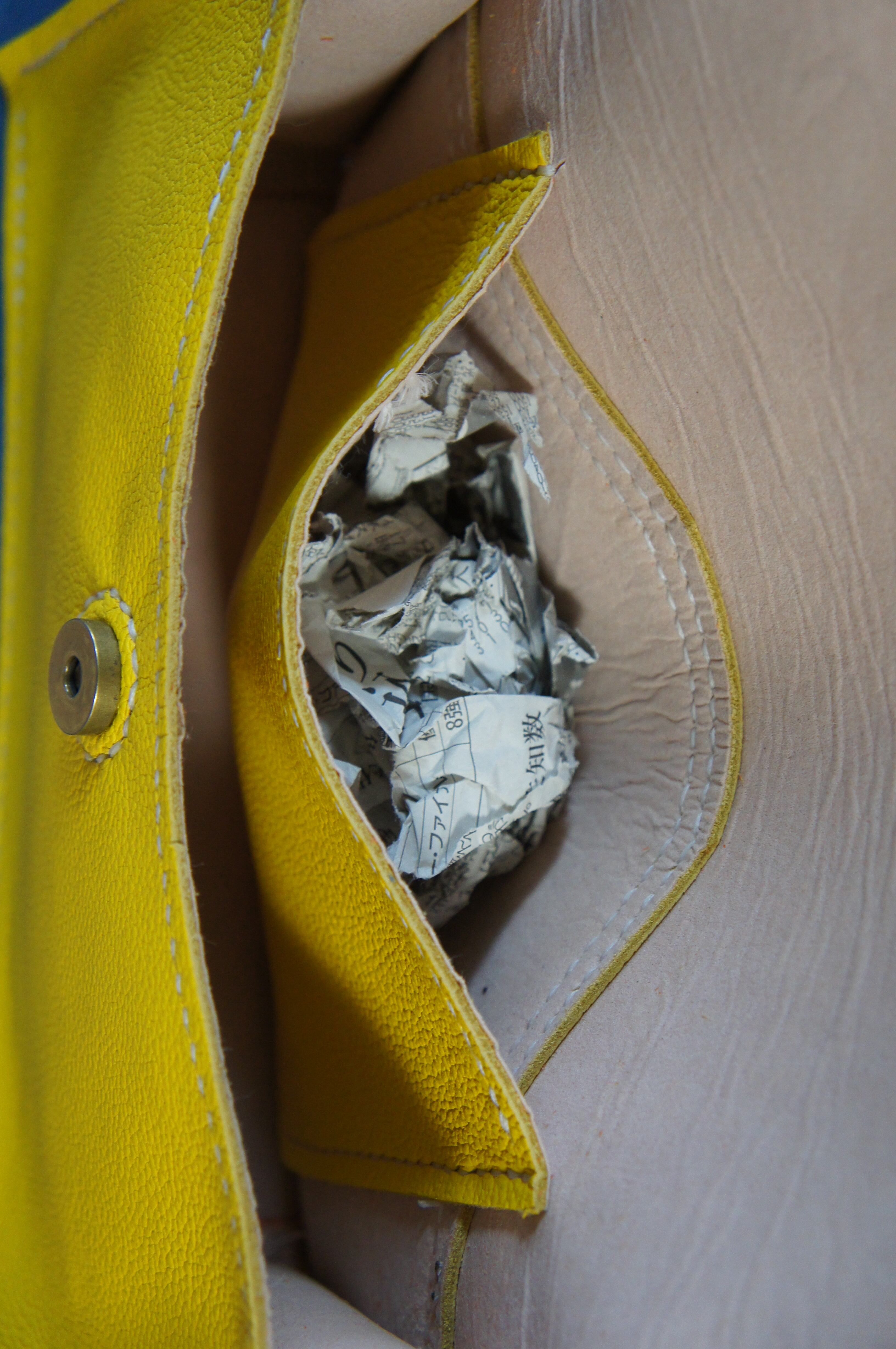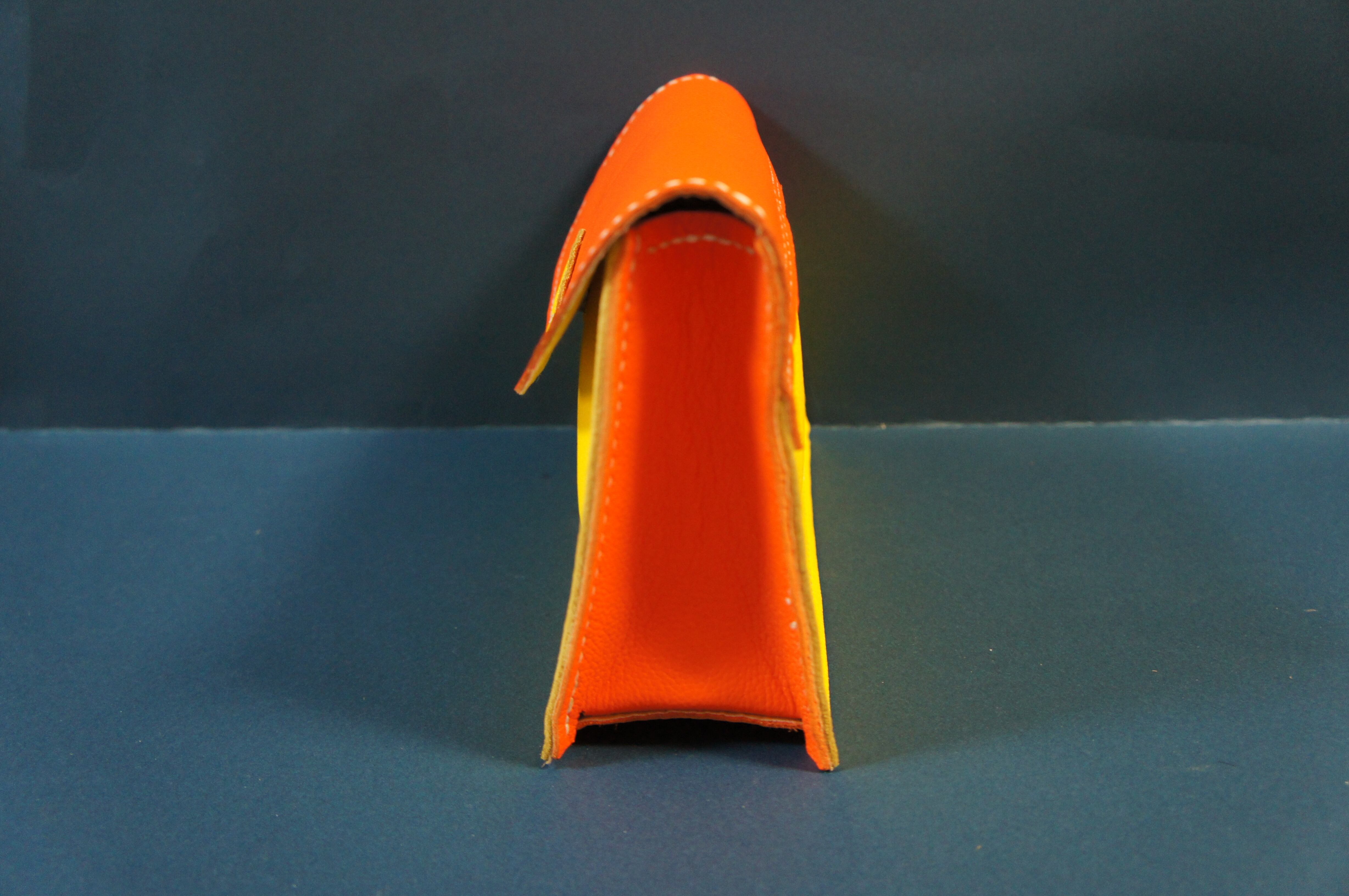 現品限り一点物です。女性向けのおしゃれポーチです。サイズは縦16cm、横25cm、幅7cmです。重さは約150gです。太さ1番の白色の糸ですべて手縫いで仕上げています。2本の針で縫っていますので、ほつれにくい構造になっています。本体は1.5mmの厚さのシュリンク牛革です。内側には厚さ0.5mmのフェルトを張っています。全体が革とフェルトの2枚を張り合わせた構造のため、強度があります。内部にはポケットが1つあります。マグネットフォックで止めるようになっています。縫い合わせた部分は、コバコートでツルツルに磨いています。